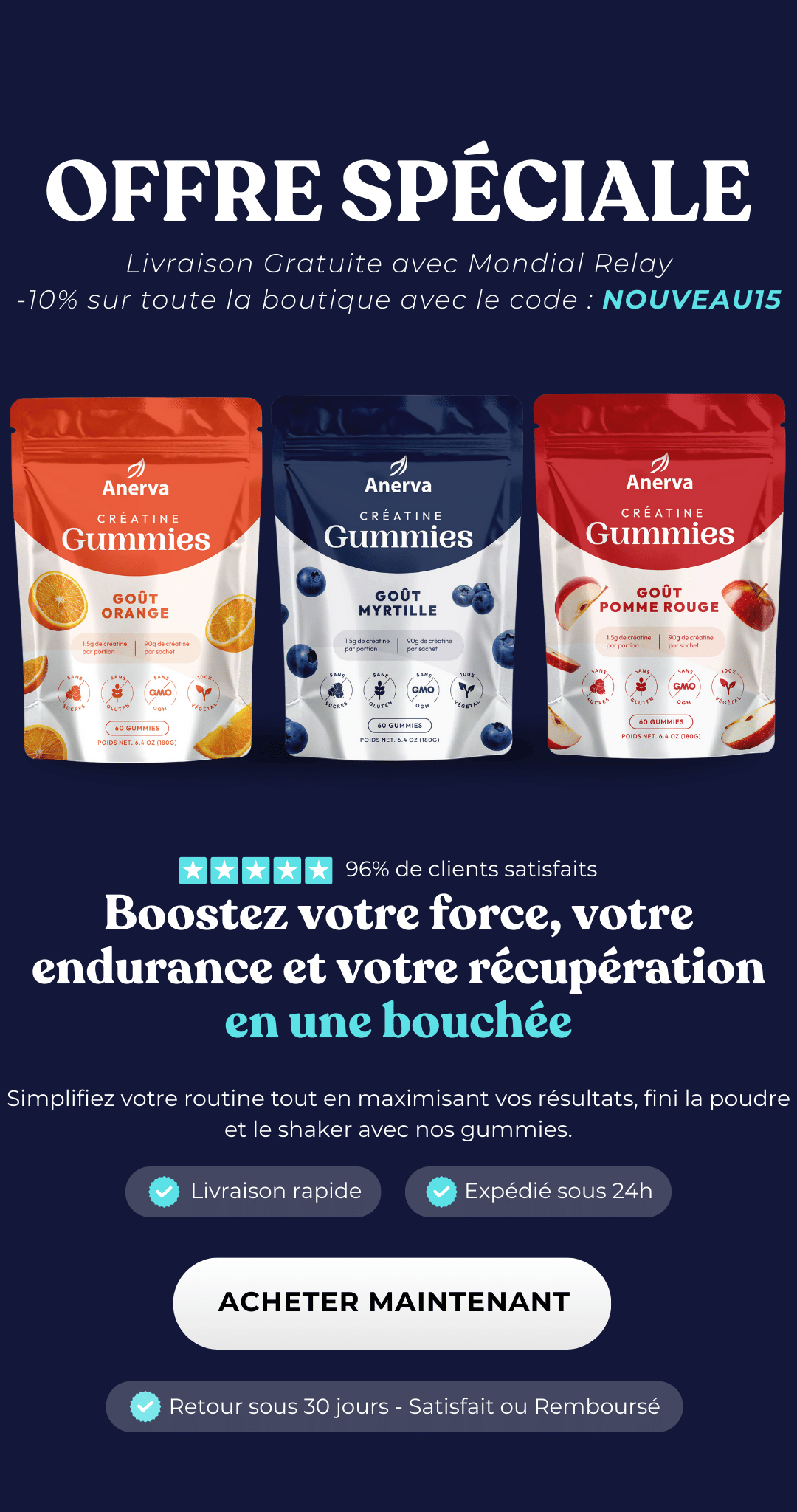 Courbaturé après une grosse séance ? La créatine aide à réparer plus rapidement les micro-déchirures musculaires, vous permettant de revenir plus vite à l’entraînement. Moins de temps à souffrir, plus de temps à progresser.