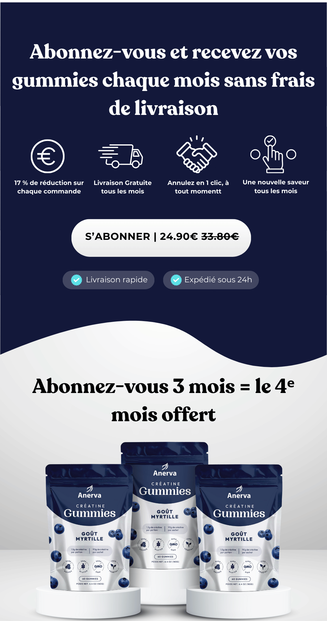 Ce n’est pas réservé au physique : la créatine favorise aussi la mémoire, la concentration et la clarté d’esprit. Être fort, c’est bien. Être fort et lucide, c’est encore mieux.