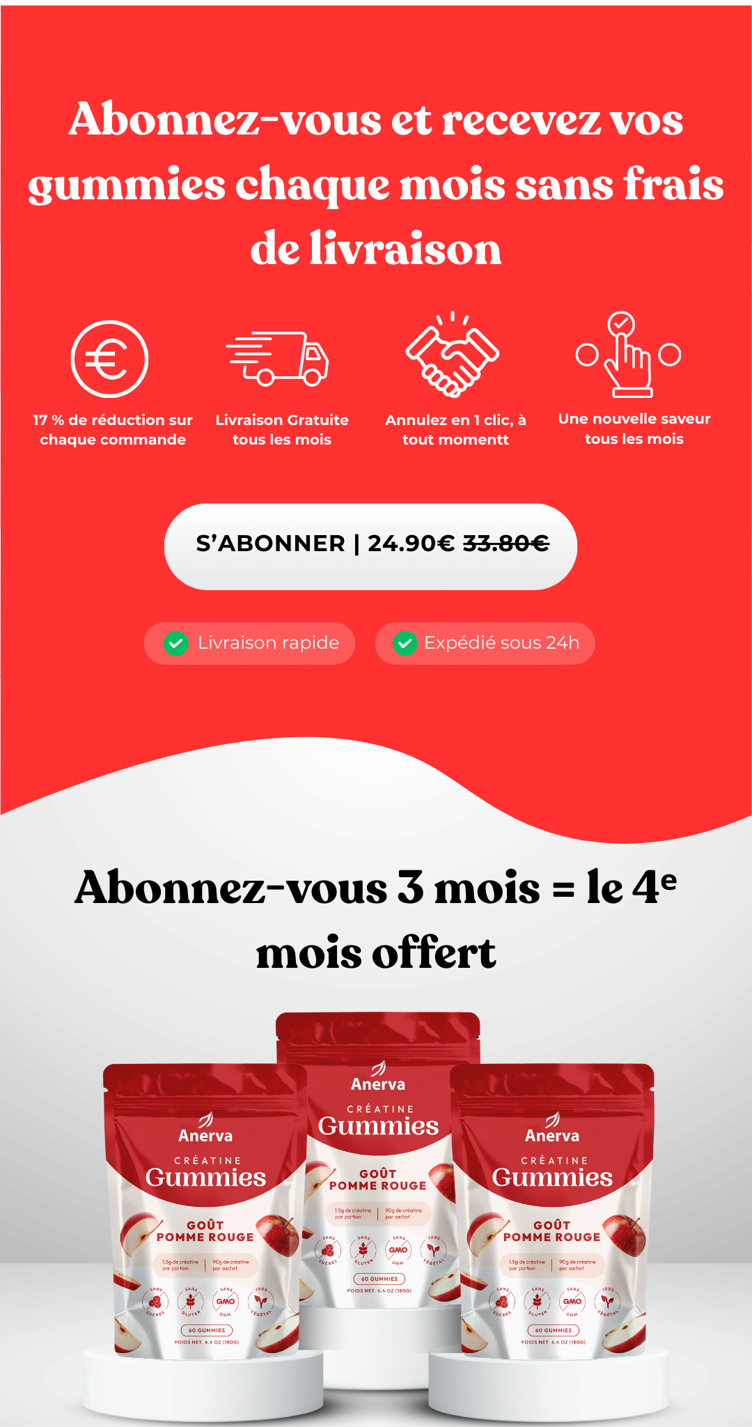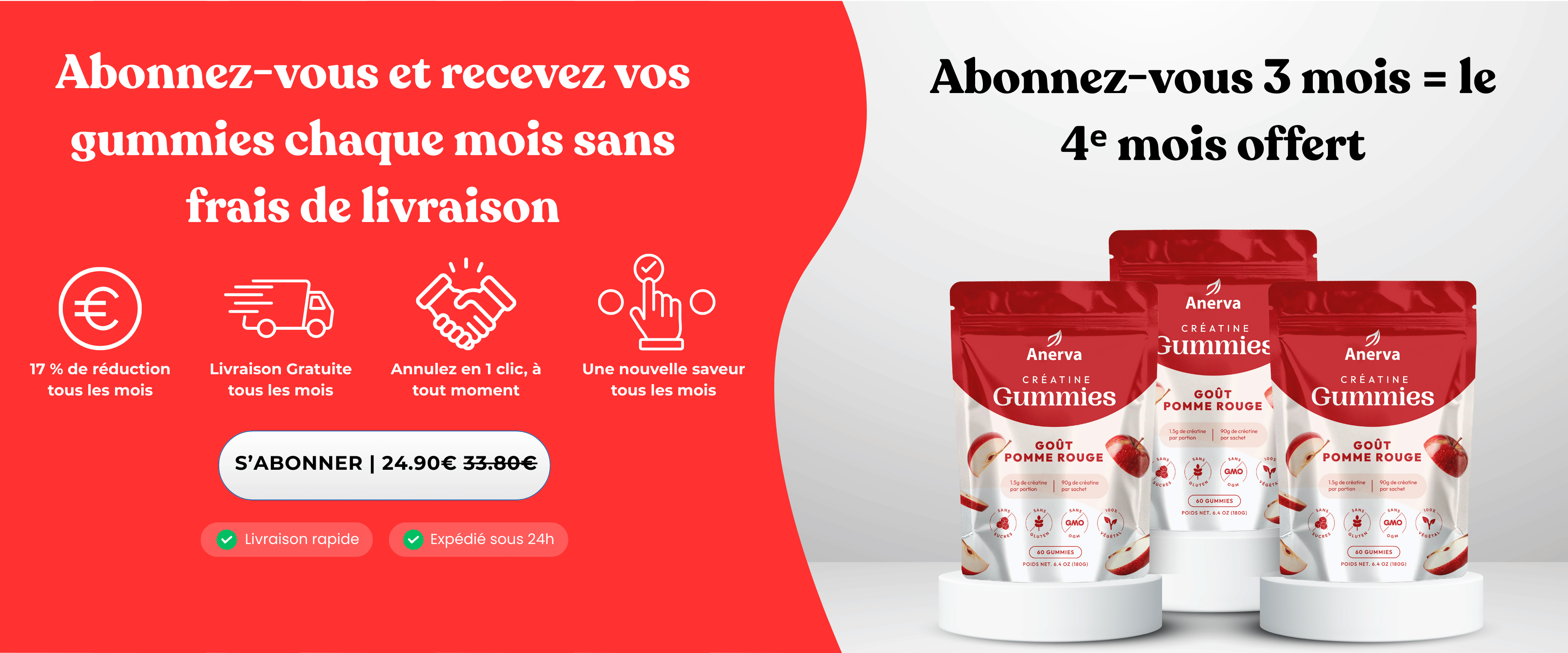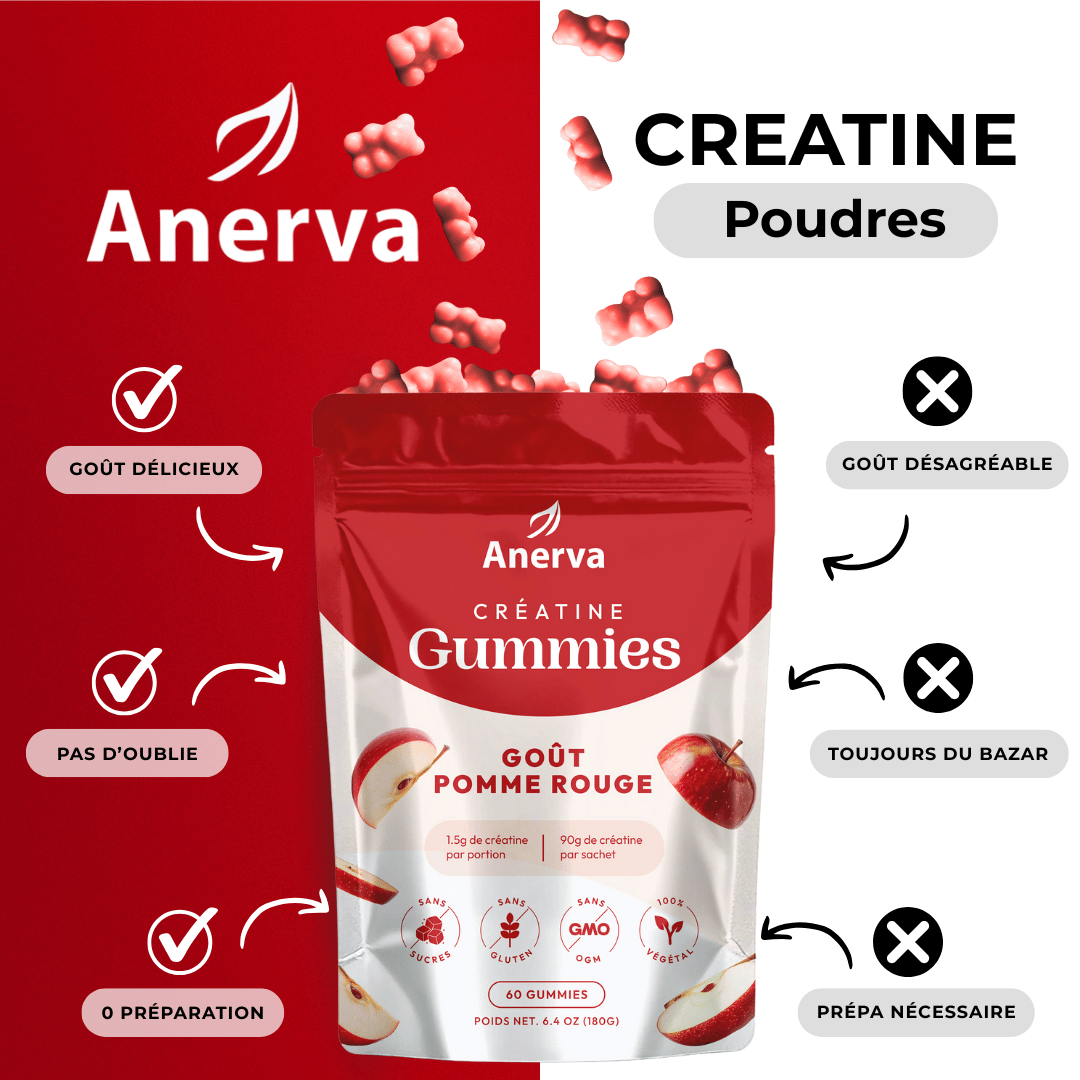 - 2 Gummies de 1.5g de créatine par jour