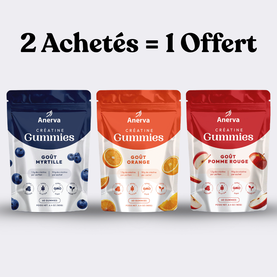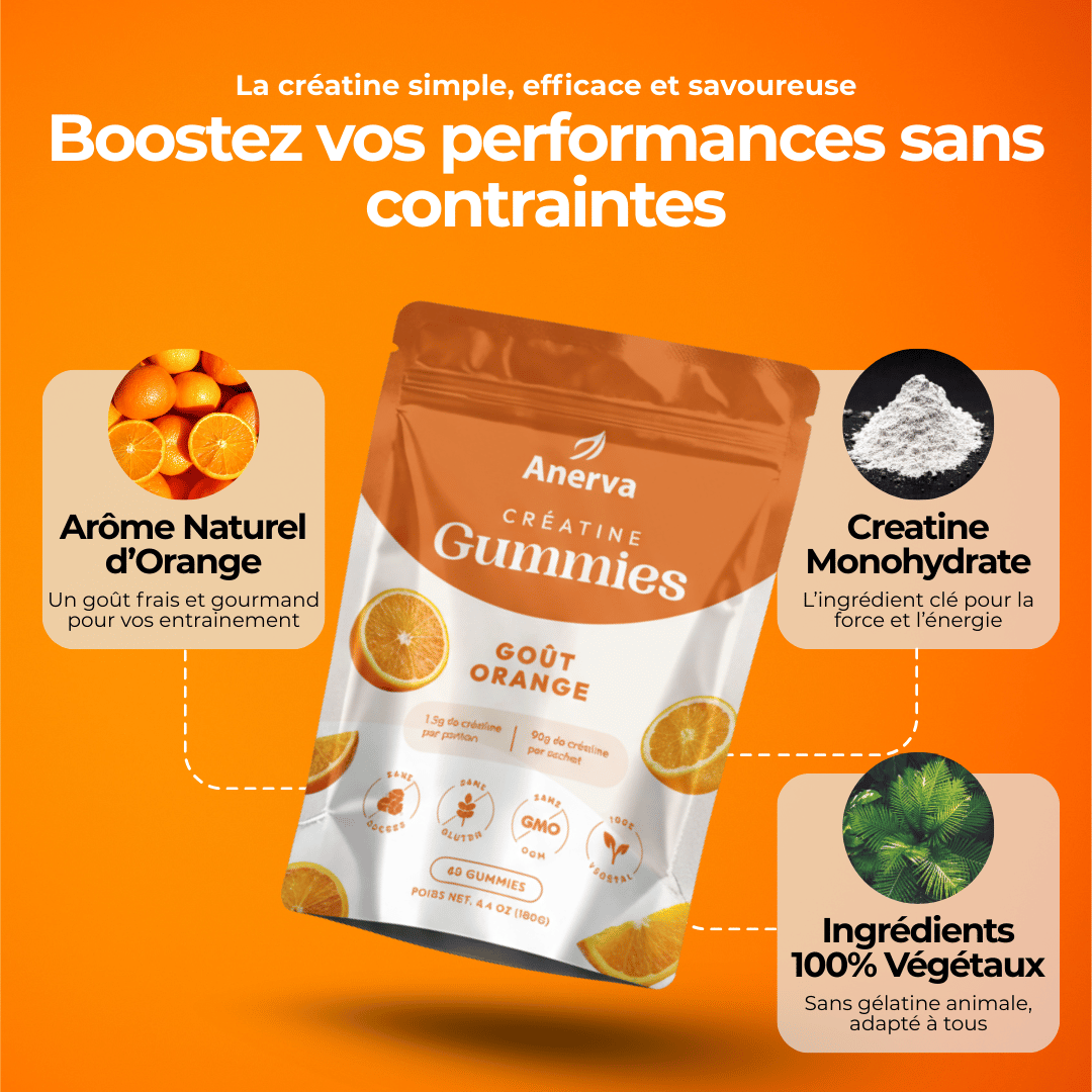 Il est recommandé de prendre 2 gummies par jour, contenant chacun 1,5 g de créatine, soit un total de 3 g de créatine par jour.